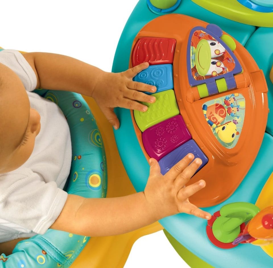 Ваш маленький исследователь не может насидеться на месте, но ещё не готов к самостоятельным шажкам? Наш развивающий центр идеально подходит для его энергичного темперамента. В этом удивительном мире детства он сможет свободно вращаться вокруг развивающего столика и обзорно наблюдать за окружающим миром.