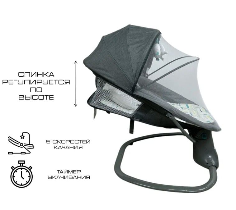 - Режимы укачивания: 5 скоростей для оптимального комфорта.