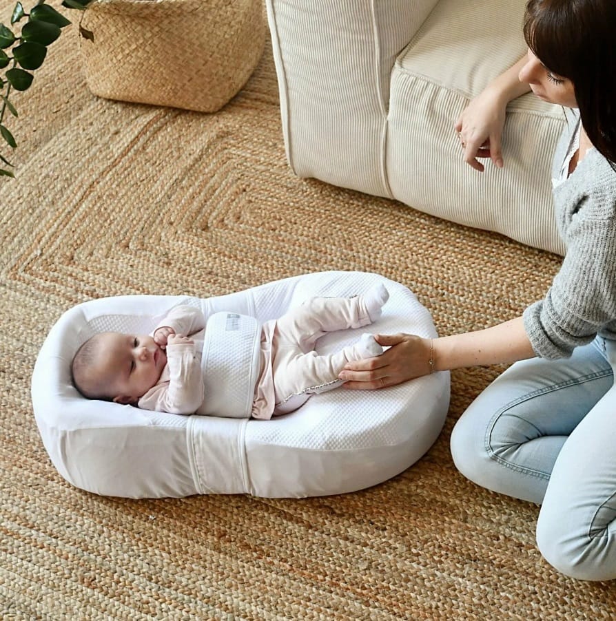 В комплекте с Cocoonababy: регулируемый ограничитель, позволяющий кокону расти вместе с ребенком, чехол из фирменного хлопка Fleur de Coton®, подстраховывающий пояс.
