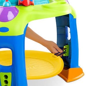 Пока ребёнок с удовольствием крутится, подпрыгивает и играет с игрушками, мама может спокойно выдохнуть и заняться своими делами. Развивающие элементы на панели не только увлекают надолго, но и способствуют развитию моторики, внимания и координации.