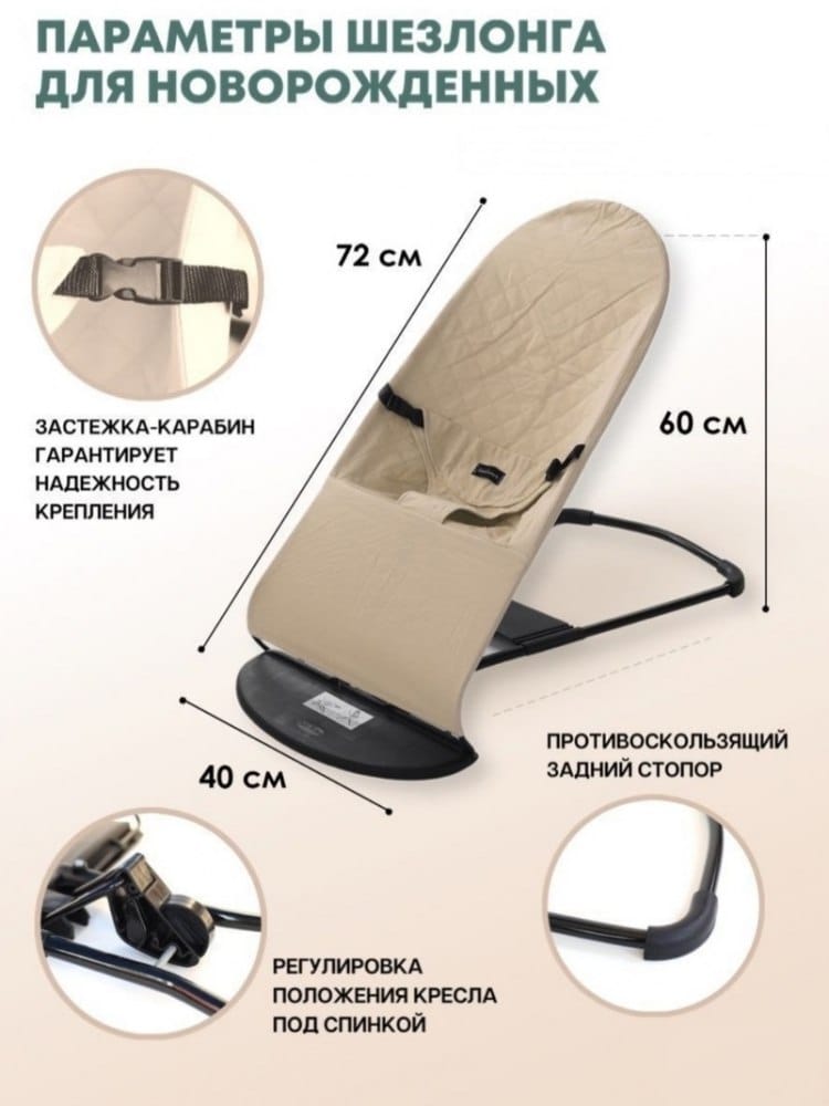 Наш шезлонг - это идеальное решение для современных родителей. Этот инновационный гаджет пользуется огромной популярностью благодаря своей функциональности и увлекательной игрушке в комплекте. Он освобождает ваши руки, обеспечивая одновременно комфорт и развлечение вашему малышу.