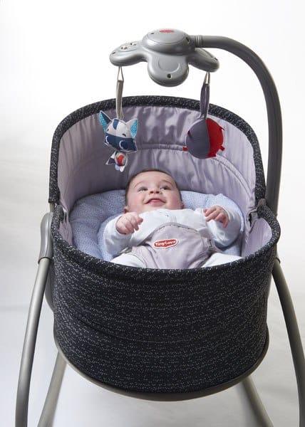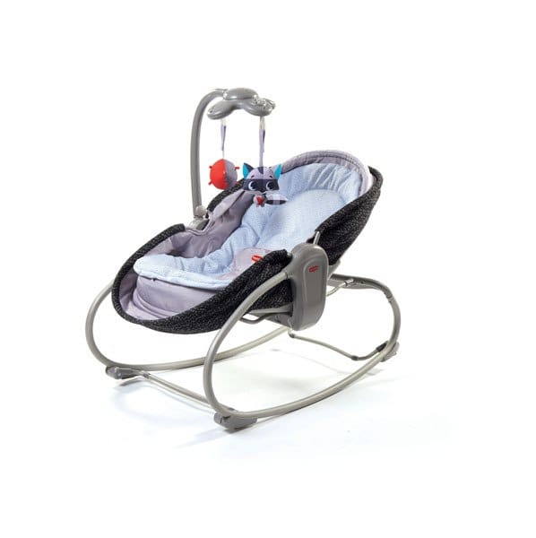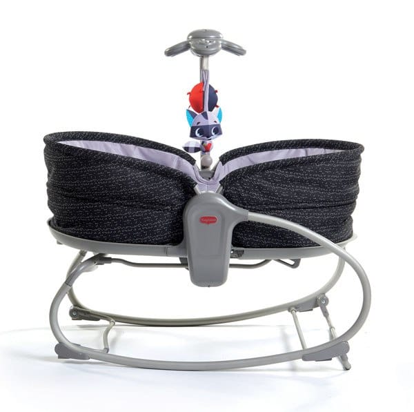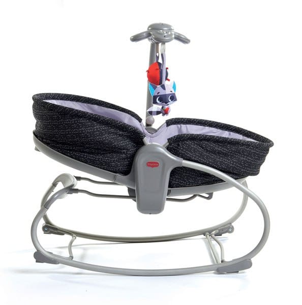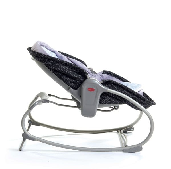 - Уникальная функция механической люльки, предоставляющая родителям возможность укачивать младенца, а также стопоры и регулятор высоты, которые позволяют зафиксировать кресло в положении полулежа или превратить его в уютную колыбельку.